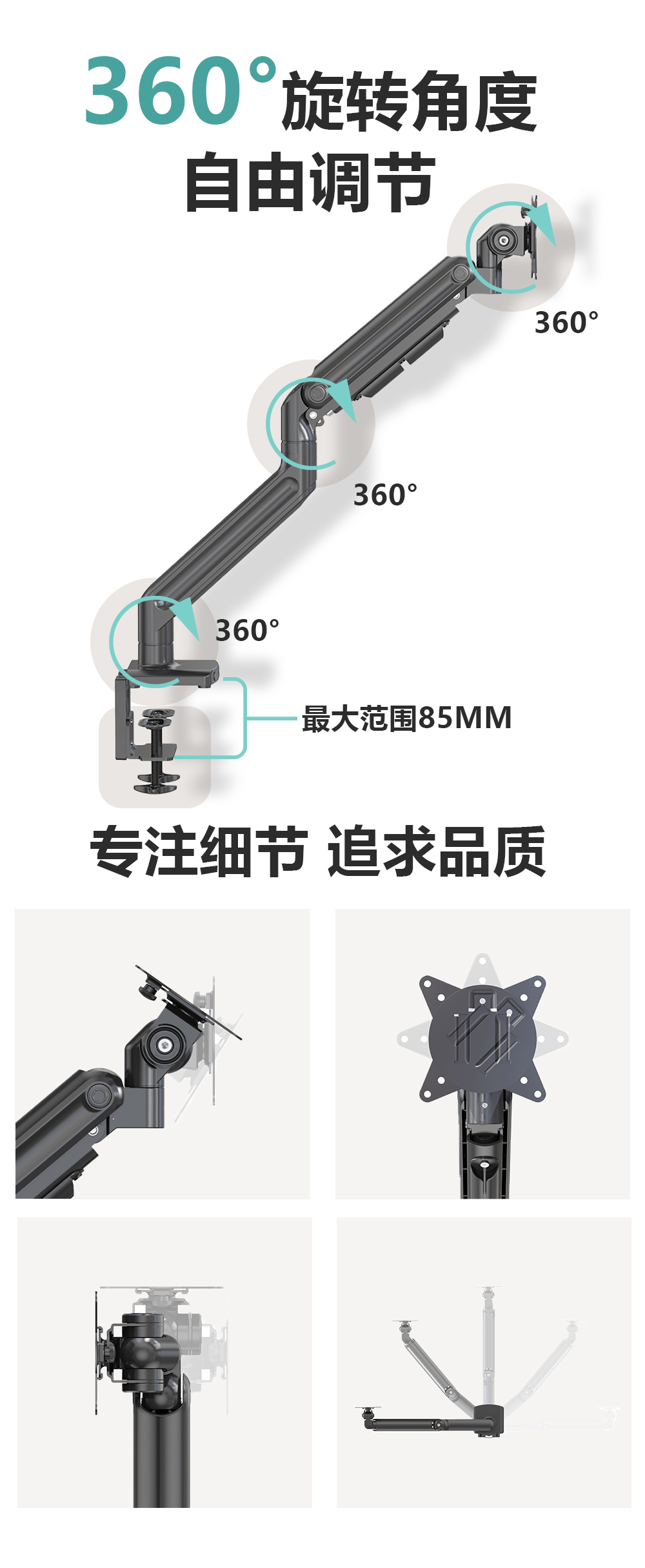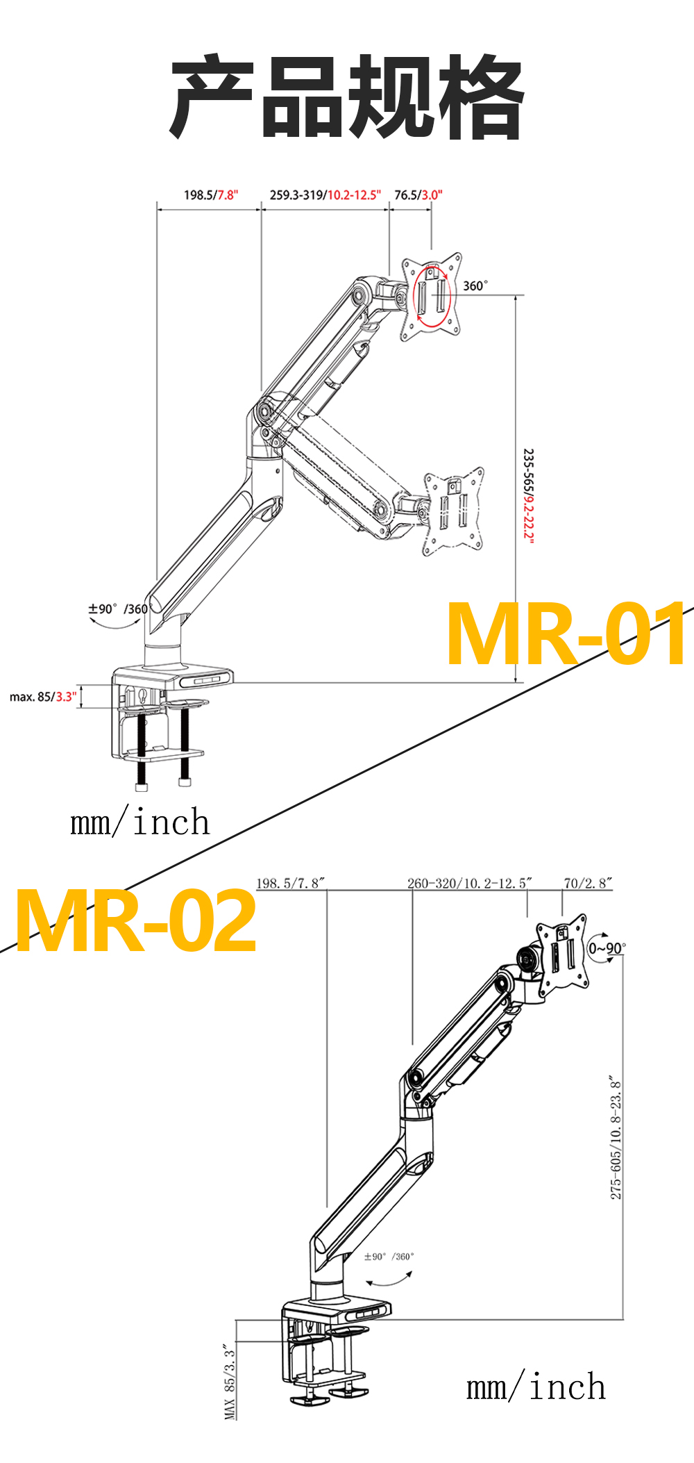 重型医疗显示器支架大承重25kg桌夹悬臂电脑支架——MR-01